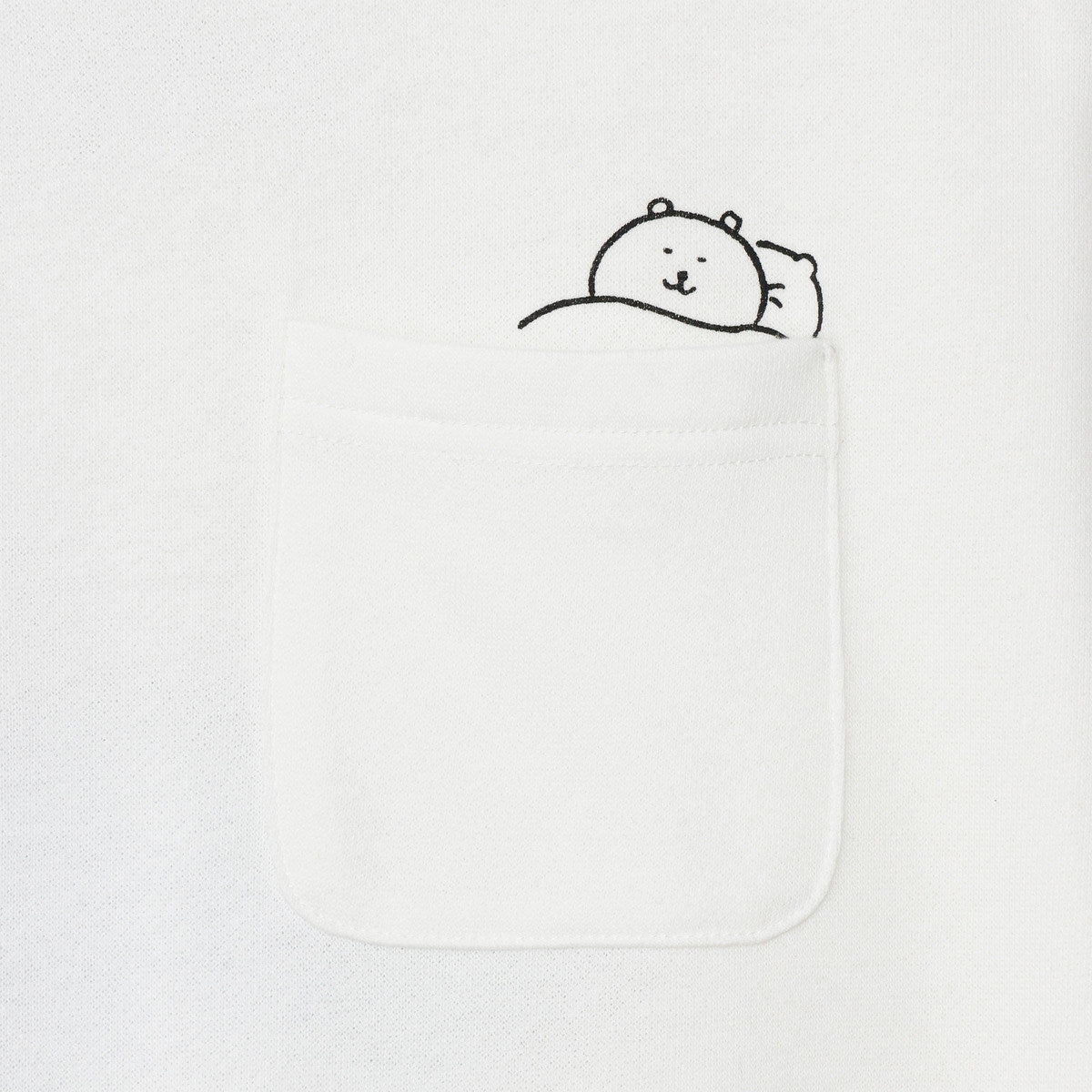 ポケットを布団に見立てた、くつろぐくまが可愛いデザイン。