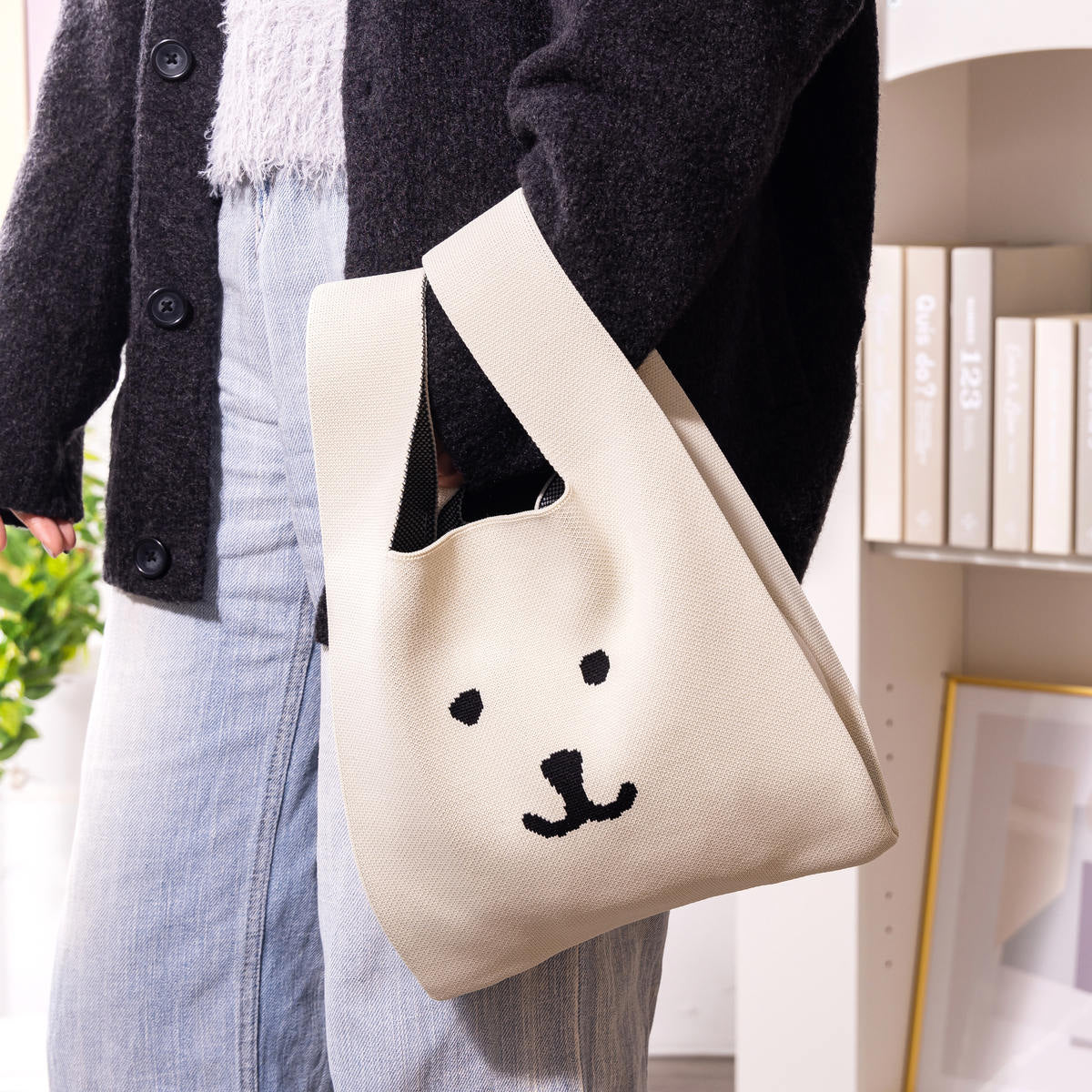 ナガノキャラクターズ カラーなニットバッグ(ホワイト)