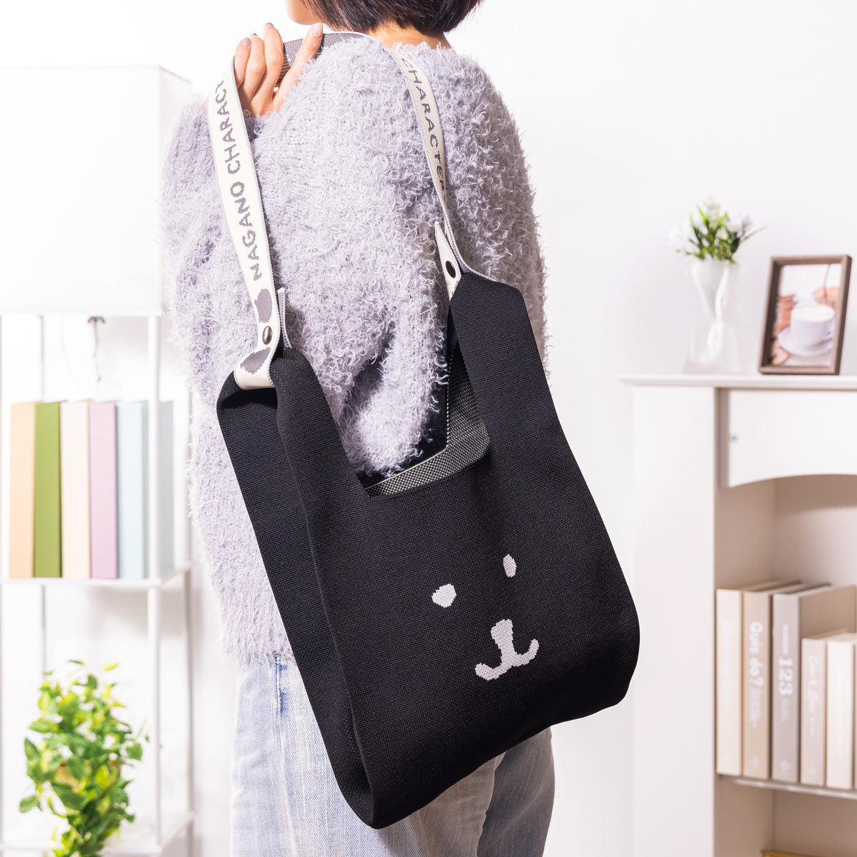 ナガノキャラクターズ カラーなニットバッグ(ブラック)