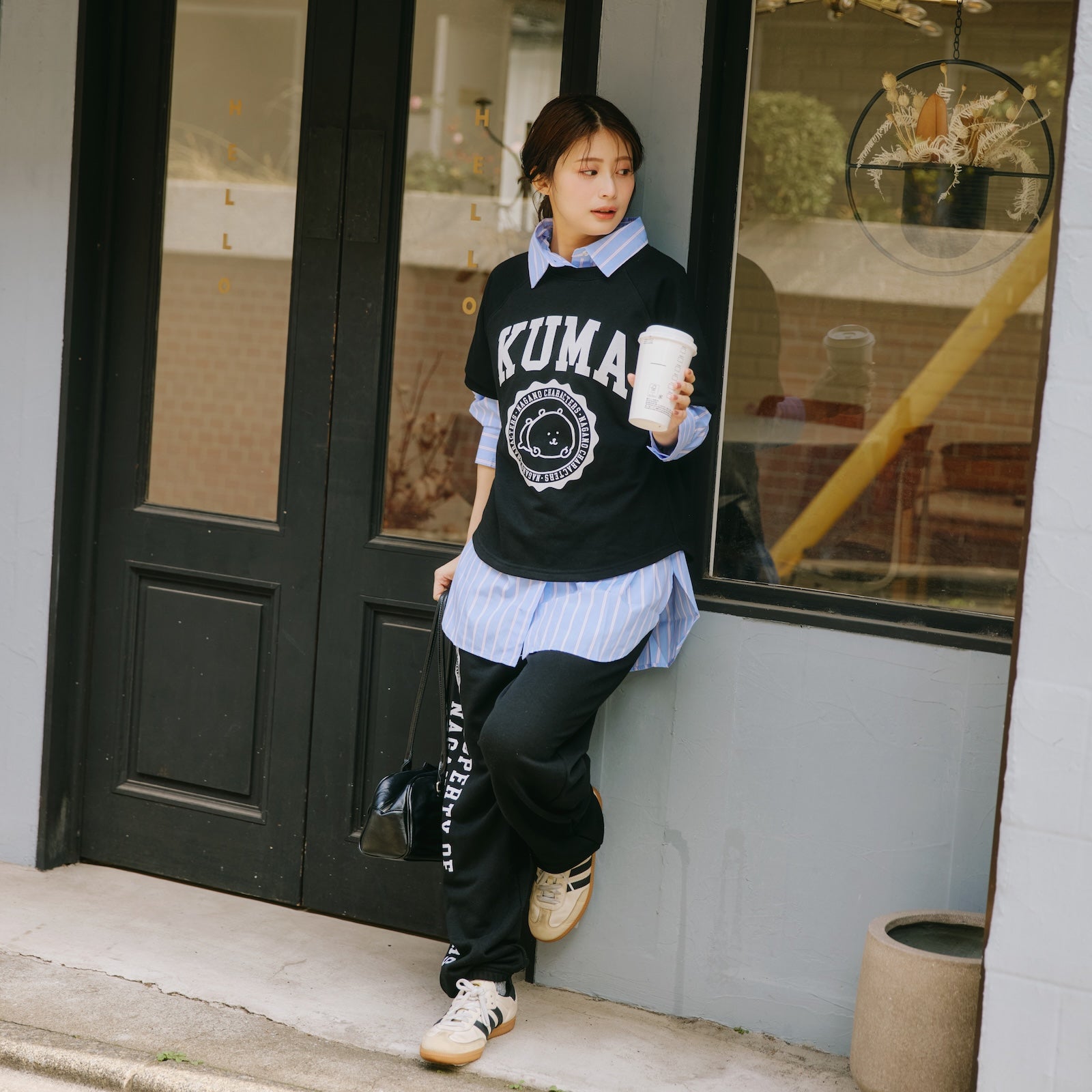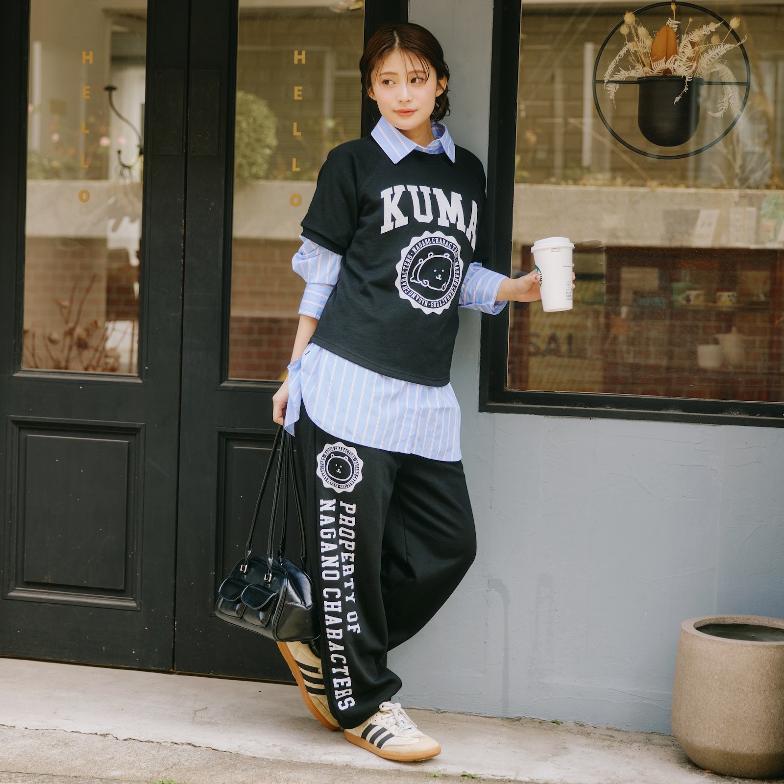 ナガノキャラクターズ スウェットパンツ カレッジ くま ブラック