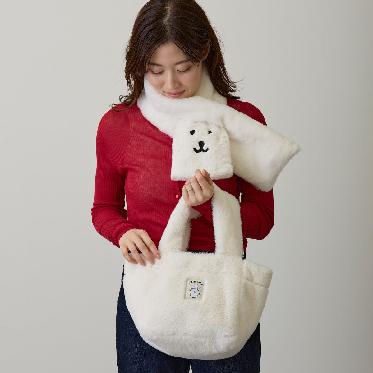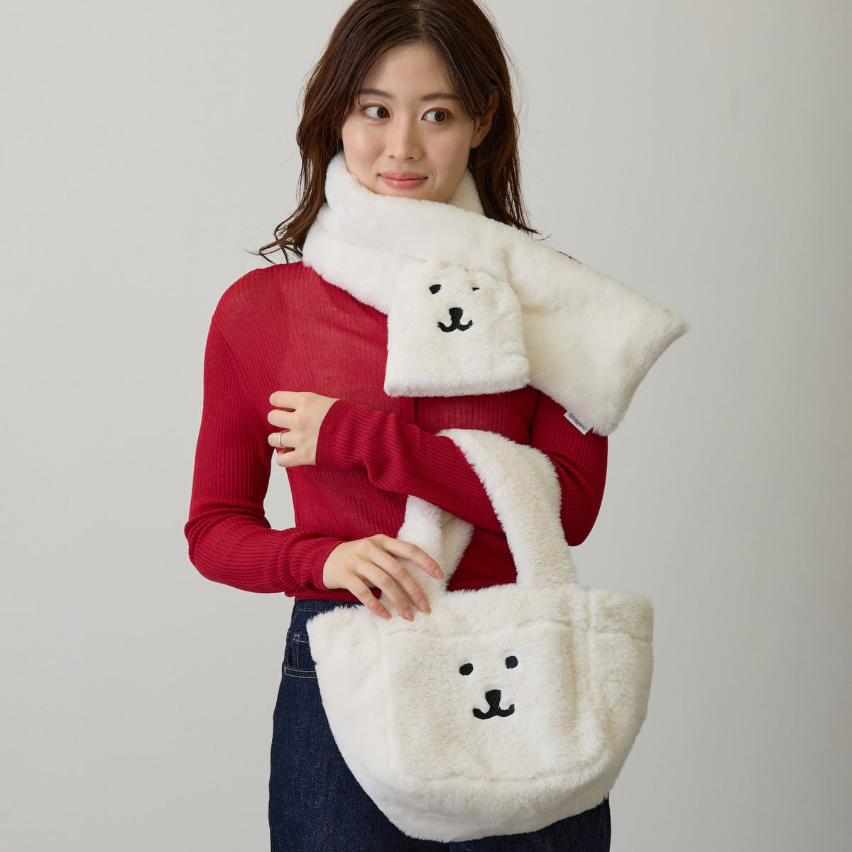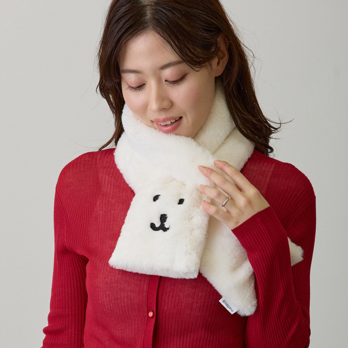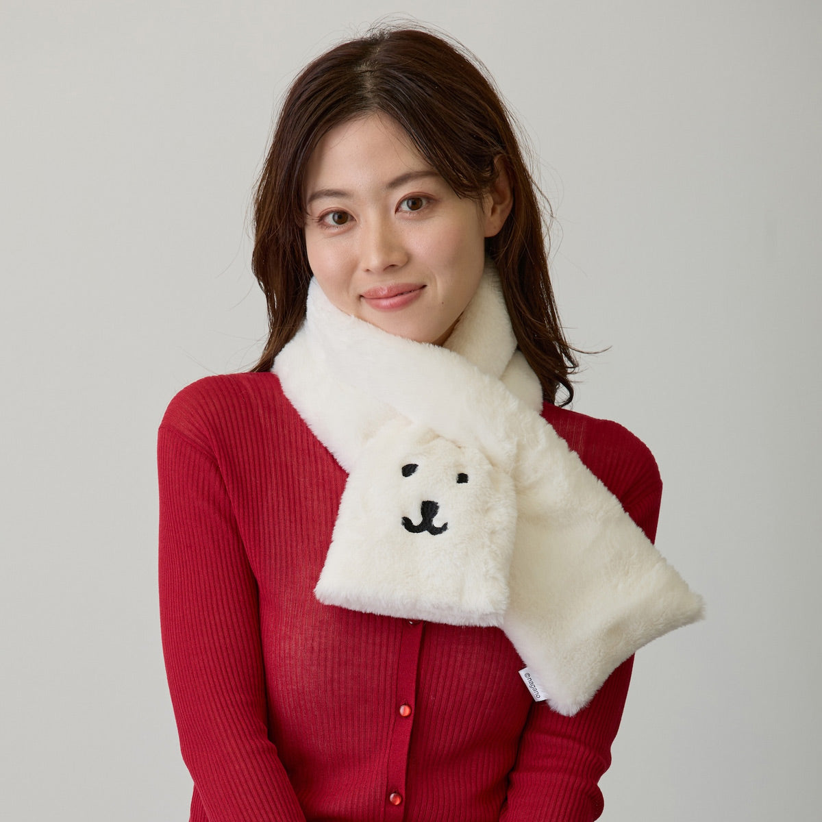 Nagano Characters 毛绒围巾 自嘲熊脸 白色