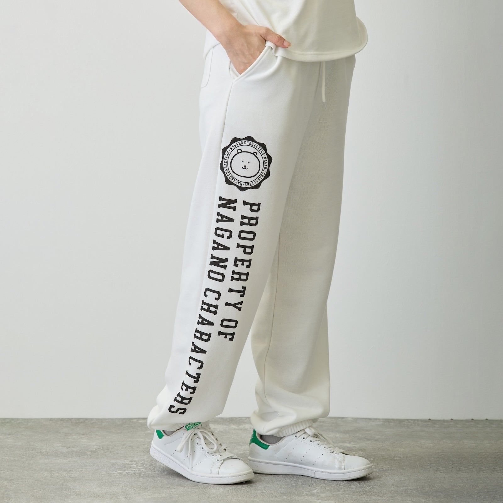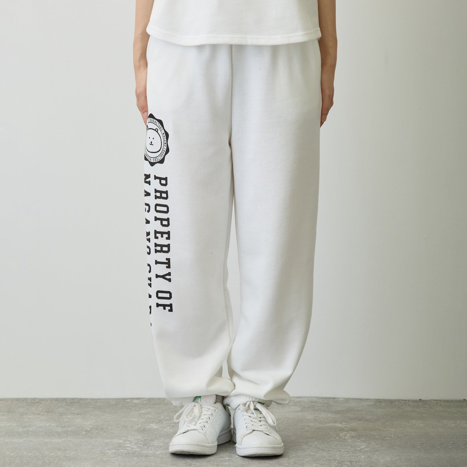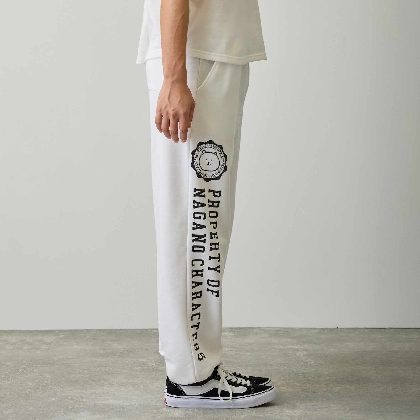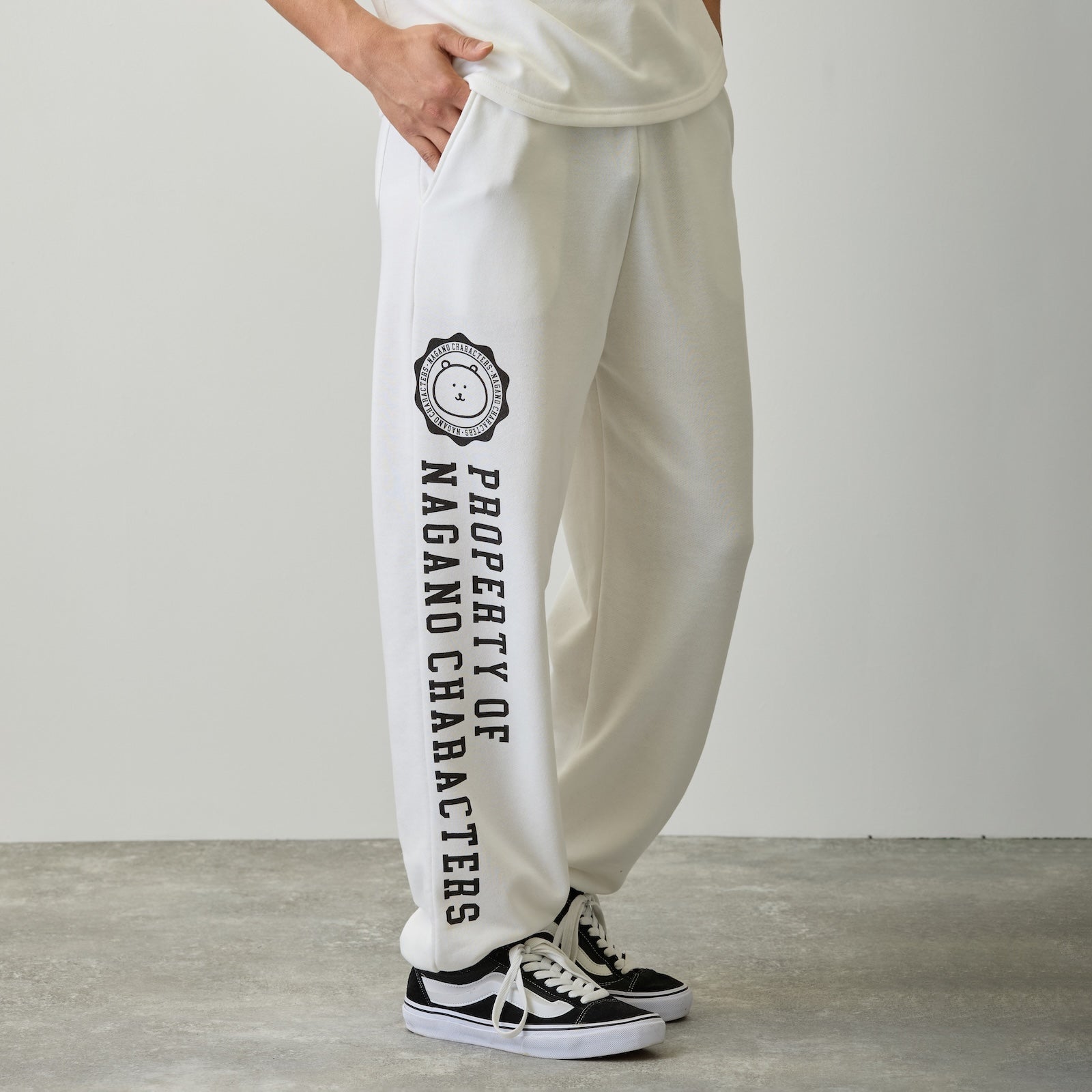 Nagano Characters 學院風束口運動褲 (自嘲熊) 白色