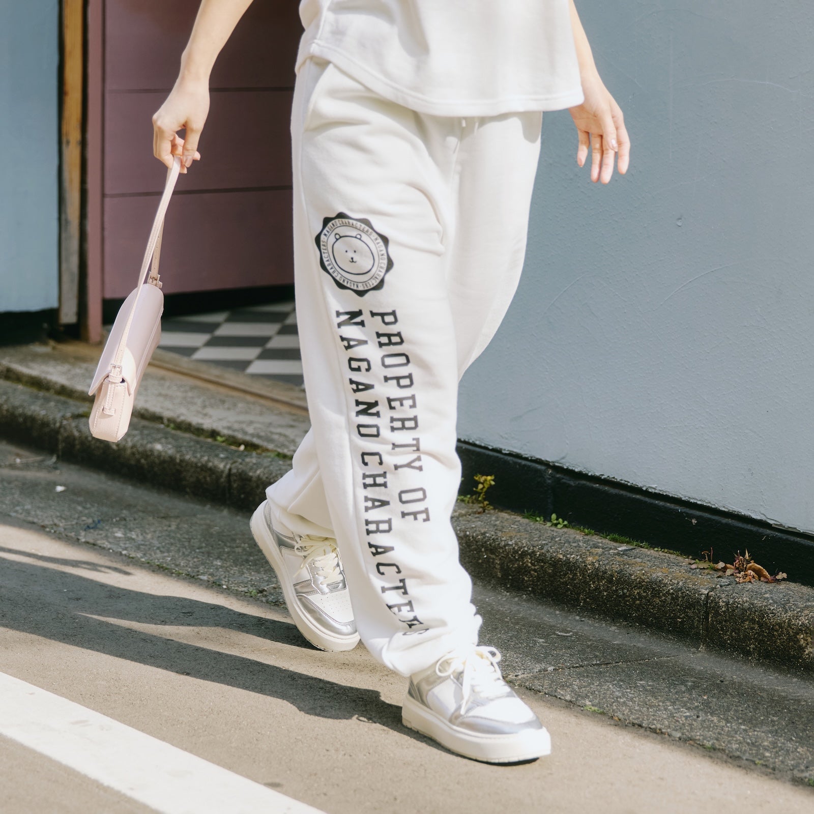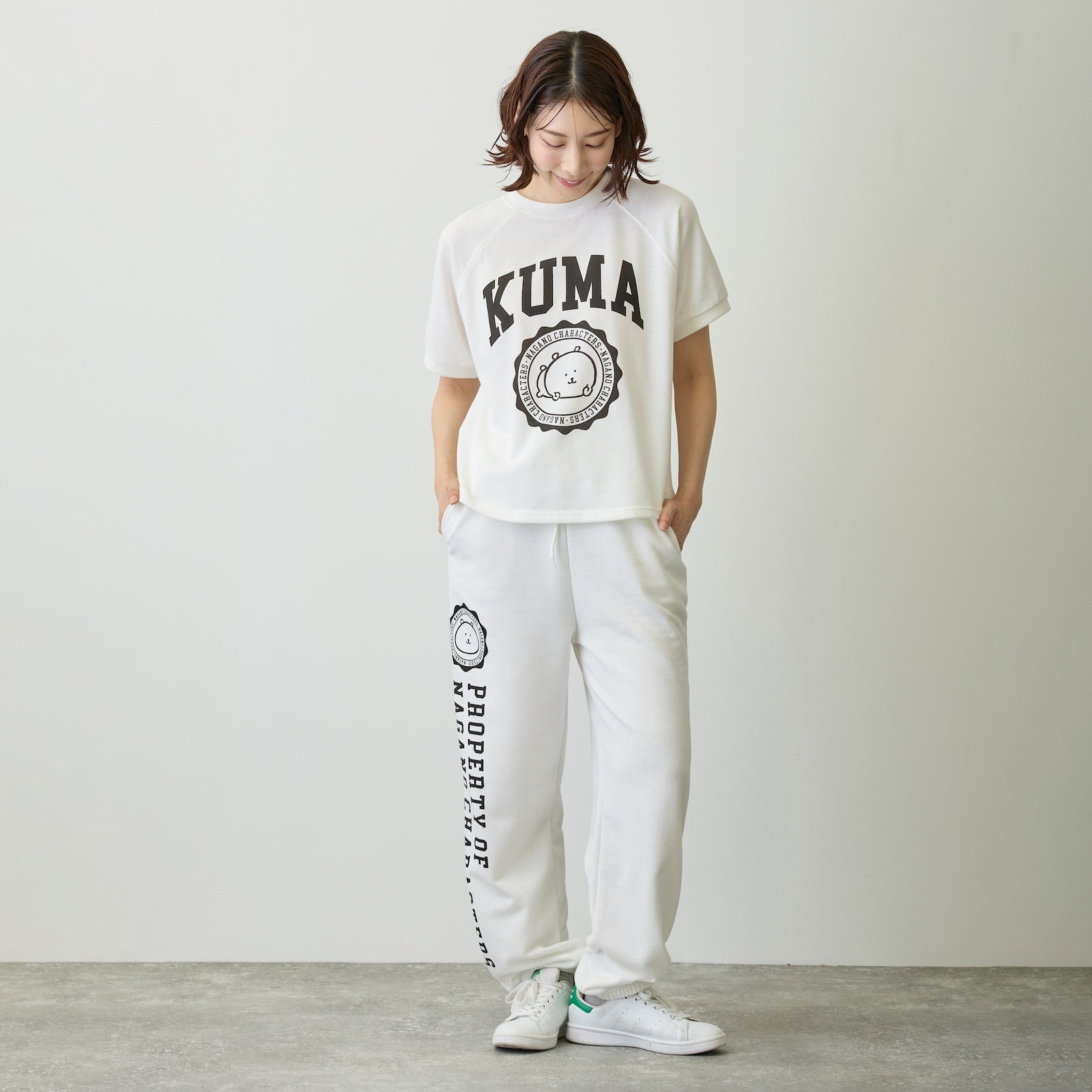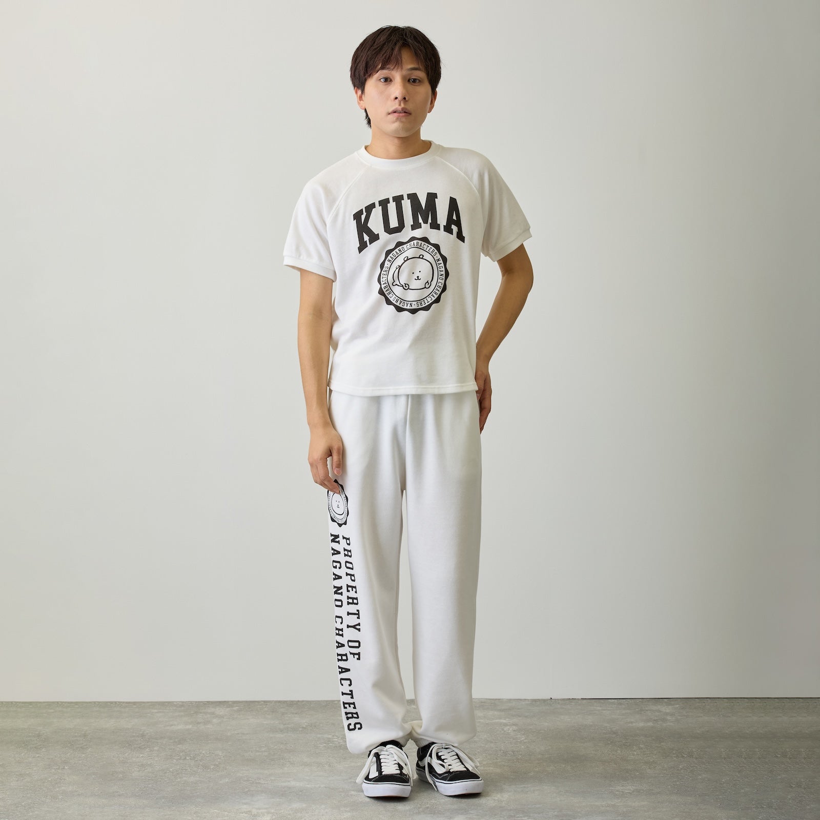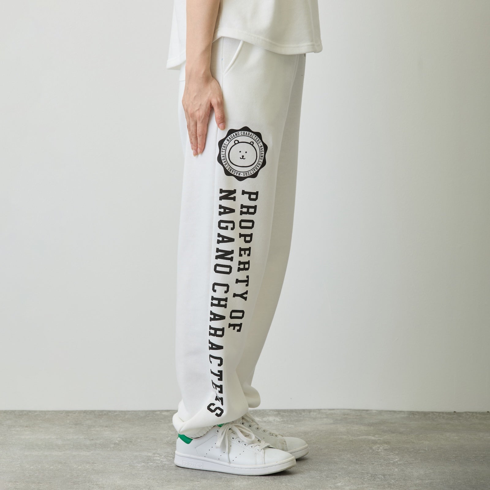 Nagano Characters 學院風束口運動褲 (自嘲熊) 白色